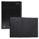 Copertina in cartone riciclato rigido 1.3 mm e tasti stampati. Interno in carta riciclata nera 270 g/mq con 2 fori per visualizzare il contenuto. Formato 25x33 cm per documenti A4.