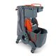 Carrello professionale con struttura in polipropilene e 4 ruote pivottanti. Costituito da 1 secchio 10+15 litri con strizzatore. 2 contenitori frontali portautensili orientabili ed estraibili. Portasacco posteriore con chiusura a cerniera e fissaggio a velcro. Dimensione: L74 x P90 x H100cm.