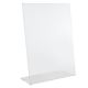 Display in PET trasparente (materiale riciclabile idoneo al contatto con gli alimenti. Ottima resistenza agli urti e al fuoco. Ideale per ogni tipo di comunicazione e perfetto come porta menU' o porta listino. Portadepliant con base a L utilizzabile sia in verticale che orizzontale. Formato A6 - 10,5x15cm - spessore 1,0mm.