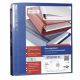 Raccoglitore personalizzabile in Colpan® (cartone rivestito in PVC con tasca interna e meccanismo a 4 anelli (a D. Tasche trasparenti sul 1 quadrante e sul dorso che consentono l'inserimento facilitato della personalizzazione. Formato esterno: 285x310 mm. Formato contenuto: 220x300 mm (A4. Dorso: 75 mm. Diametro anelli: 50 mm. Colore blu.