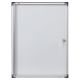 Bacheca extrapiatta per esporre comunicazione in corridoi e passaggi stretti. Cornice con profilo assottigliato in alluminio anodizzato con angoli in colore blu. Anta battente provvista di serratura con facciata in materiale acrilico. Fondo in metallo bianco per affiggere comunicazioni con l'utilizzo di magnetini o per scrivere con pennarelli a secco. L'anta si apre con un angolo di 135 . ProfonditA' interna 11mm. Fornita con kit per il fissaggio. dimensioni est.: 510x680x22mm.