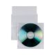 Buste porta CD-DVD in PP liscio con striscia autoadesiva sul retro e patella di chiusura per evitare la fuoriuscita accidentale di un CD-DVD. Formato 12.5x12cm.