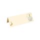 Segnaposti realizzati in carta color avorio con stampe a tema e decorazioni in oro in polvere.