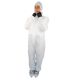 Tuta in SMS, 55 gr/m2 con elastico al cappuccio, in vita, alle caviglie e ai polsini. Chiusura con cerniera e patta. Silicon free. Trattamento antistatico. DPI categoria III. Su ordinazione tutte le taglie dalla S alla 3XL anche in azzurro.