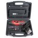 Per lavorazioni su metallo, vetro, ceramica, legno e materiale plastico. VelocitA' variabile con preselezione del numero di giri. Mandrino autoserrante. Pulsante blocca albero per cambio utensile veloce. potenza 170W giri/min a vuoto: 8000-35000 mandrino 1,6-2,4-3,2mm Viene fornito con 38 accessori, 3 mandrini portautensili, albero di trasmissione flessibile, manico supplementare, tutti inseriti al l'interno dell'apposita valigetta
