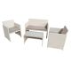 Set composto da un tavolino, un divano e due poltrone. Struttura in acciaio verniciato con vernici epossidiche, rivestimento in polyrattan colore bianco completo di cuscini colore grigio chiaro. Tavolo rettangolare con top in vetro temperato spessore 5mm. Il set E' consegnato smontato e contenuto in un unico cartone.Articolo destinato ad esclusivo uso domestico. Non adatto ad uso pubblico.Set composto da:1 tavolino H40 x P45 x L75cm 2 poltrone H77 x P60 x L58cm 1 divano H77 x P60 x L108cm
