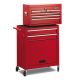 Carrello portautensili in acciaio scomponibile in due parti: la parte inferiore E' dotata di quattro ruote pivottanti, un vano accessibile frontalmente con sportello a ribalta, un pannello laterale, un lato forato per appendere ganci portattrezzi, due cassetti di grandi dimensioni, due chiavi in dotazione. La parte superiore, che puo essere rimossa, E' una cassettiera costituita da box con coperchio fornito di chiave e di sei cassetti e puo essere infilata all interno della parte inferiore