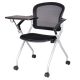 Seduta con tavoletta ribaltabile e 4 ruote, ideale per sale conferenza. Schienale in in rete e seduta rivestita in PP. Impilabile orizzontalmente. Larghezza fuori tutto cm 58 Larghezza seduta cm 50 ProfonditA' cm 61 Altezza cm 83 H. seduta cm 46. Tavoletta ribaltabile 38x30,5cm. MADE IN CHINA
