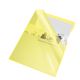 Cartelline a L in PVC extra lucido giallo rigido. Ampia lunetta per facilitare l'apertura. Formato utile: 21x29,7cm. Finitura liscia. Confezione da 25 buste.