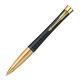 Penna Parker con lacca nera dal tocco mattato per rinforzare l'esclusivitA' della finitura. Integrato con finiture oro. Confezionata in elegante astuccio regalo. Fornita con refill colore blu.