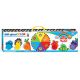 Maxi valigetta con 8 barattoli da 100gr (giallo, rosso, ciano, arancione, viola, verde, bianco e nero. 1 maxi tovaglia gioco 60x60cm, 1 mattarello, 1 coltellino, 1 ruzzola, libricino con la teoria del colore, 1 set da 3 lenti colorate, 1 set da 3 ruote colorate cambia-colore. Divertente gioco che invita a scoprire i colori e le sue alchimie.