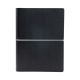 Taccuino con copertina in sintetico effetto liscio. Morbida, resistente e flessibile. Chiusura con elastico orizzontale. Carta riciclata colore avorio. Fatto a mano in Italia.