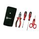 Trousse in similpelle composta da: n 1 pz forbice per elettricisti lama diritta micro-dentata 145 mm n 1 pz pinza universale in acciaio cromo-vanadio brunita nera 160 mm n 1 pz cacciavite punta piatta 4.0x100 mm n 1 pz cacciavite punta phillips 1x80 mm
