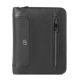 Portablocco A5 con zip. Blocco notes verticale A5, scomparti per biglietti, asola porta penne e tasca esterna con zip.