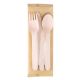 100 Tris posate monouso in legno con tovagliolo 16 cm Signor Bio