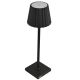 Lampada da tavolo a LED ricaricabile di colore nero in alluminio e PMMA. Dimensioni: 10x10x38Hcm.