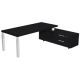 Postazione di lavoro composta da un piano sorretto da un mobile di servizio portante (reversibile destro o sinistro e da una coppia di gambe in metallo a sezione quadrata complete di piedini regolabili in altezza. Le gambe hanno sezione 70x70 mm sul fusto e 40x40 mm nella parte alta e si agganciano al desktop ognuna con una robusta piastra metallica. Desktop (sp. 38 mm con bordo antiurto in ABS (sp. 2 mm. Mobile di servizio: struttura sp