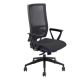 Poltrona con schienale alto in rete nera con supporto lombare. Rivestimento in tessuto Eco con trattamento ignifugo, meccanismo sincronizzato con contatto permanente, elevazione a gas e braccioli in polipropilene.