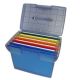 Valigetta portatile per l'archivio dell'ufficio e della casa. Realizzata in polipropilene blu translucido con maniglia a scomparsa e chiusura a scatto. Ideale per il trasporto pratico e sicuro dei documenti. Completa di 5 cartelle Joker interasse 33 cm. in colori assortiti.Arianna E' oggi ancora piU' sicura grazie alla predisposizione per chiusura tramite lucchetto di sicurezza.Misure: L37xP25xH30 cm.MADE IN ITALY
