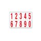 Foglio con 10 numeri autoadesivi da 0 a 9 rosso/bianco 70x124mm