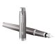 Stilografica Parker in acciaio inossidabile con finitura metallica satinata sfumata e completata con finiture cromate. Confezionata in elegante astuccio regalo. Fornita con cartuccia colore blu.