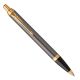 Elegante penna a sfera dotata di fusto in acciaio inox laccato grigio arrichito da dettagli in oro. Incluso refill blu. Fornita con esclusivo astuccio Parker.