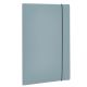 Cartellina a 3 lembi in polipropilene. Contenuto minimo di materiale riciclato post consumo pari al 30%. Confezionamento e imballo privi di plastica. Speaker label in carta 100% riciclata. Prodotto 100% riciclabile. Chiusura con elastico.