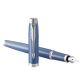 Stilografica Parker in acciaio inossidabile con finitura metallica satinata sfumata e completata con finiture cromate. Confezionata in elegante astuccio regalo. Fornita con cartuccia colore blu.