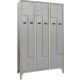 Armadio spogliatoio monoblocco (elettro-puntato non assemblato su piedi con doppia porta a L ogni colonna singola. Struttura portante realizzata in lamiera d'acciaio profilata prima scelta spessore 6/10. N. 2 ante contrapposte per colonna volte ad ottimizzare lo spazio, dotate di canottatura di rinforzo, di fori di aerazione e porta cartellino in materiale plastico. Vano calzature diviso da vano vestiario (maggior igiene
