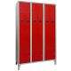 Armadio spogliatoio monoblocco (elettro-puntato non assemblato su piedi con doppia porta a L ogni colonna singola. Struttura portante realizzata in lamiera d'acciaio profilata prima scelta spessore 6/10. N. 2 ante contrapposte per colonna volte ad ottimizzare lo spazio, dotate di canottatura di rinforzo, di fori di aerazione e porta cartellino in materiale plastico. Vano calzature diviso da vano vestiario (maggior igiene