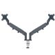 Braccio ergonomico per monitor doppio certificato TUV e IGR, in grado di migliorare la postura, l'allineamento degli occhi e il comfort di collo e spalle quando l'altezza del monitor E' regolata correttamente. Il design salvaspazio consente di montarlo in spazi ridotti, pur garantendo la massima profonditA' di campo e un'ergonomia visiva ott imale