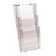 Porta depliant a 3 tasche a4 in stirene trasparente. Predisposto per l'utilizzo a parete mediante semplici viti. Dimensioni lxhxp: 23x52x3,2/15,5cm