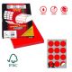 Scatola da 100fogli da 21x29,7cm (A4 di etichette in carta fluo rosso adesive permanenti nel formato. Stampabili con stampanti inkjet, laser e fotocopiatori. 12 etichette tonde per foglio.