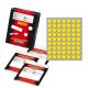 Busta da 10 fogli formato 125x152.5mm di etichette giallo permanenti. Ogni foglio contiene 63 etichette tonde da 14mm.