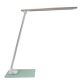 Lampada a LED integrato 6W (non sostituibile con elegante base in vetro. Dimmer a sfioramento sulla base consente di variare 3 livelli di temperatura del colore (bianco, giallo, naturale con una breve pressione e l'intensitA' della luce con una pressione continua. In modalitA' notturna fornisce una luce morbida alla base che puO' essere usata come luce di cortesia. Dotata di porta USB. Cavo da 1,5mt. Completamente ripiegabile, perfetta per smart working