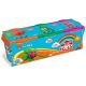 Pasta per giocare morbida, fatta con ingredienti naturali. E' innocua e non macchia. 3 barattoli da 220gr nei colori erde-arancio-magenta.