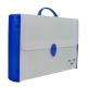 Valigetta in polipropilene alveolare con fianchi di rinforzo in polipropilene rigido. Chiusura singola. Maniglia e chiusura in plastica antiurto in colori assortiti.