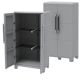 Armadio in colore grigio con struttura a moduli interconnessi e sovrapposti che garantiscono soliditA' e robustezza. Fondo rinforzato con 6 piedi di cui i due anteriori regolabili in altezza. Ripiani interni modulari con portata massima di 40Kg a ripiano. Ideale anche per ambiente esterno (resiste alle temperature da +40 a -5 e ai raggi UV. Cerniere in metallo resistenti antivento, anta a battente, ripiano inclinato (IP43 rain proof, labirinti antipioggia