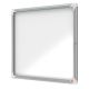 Ad anta battente. Moderna, sicura e resistente all'umoditO'. nuovo design con robusta cornice in alluminio e vetro di sicurezza di 4mm. waterproof to iec 60529. Fondo in acciaio bianco magnetico per uso con magnetini o scrivibile con pennarelli a secco. Fissaggio semplice effettuabile da una sola persona. Serratura con 2 chiavi. Dimensioni esterne: 709x668mm.