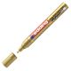 Marcatore a vernice coprente effetto smalto, permanente ed inodore. Privo di toluene/xilene. Resiste all'acqua, allo sfregamento, alle temperature fino a 400 C (bianco e argento fi no a 1000 . Aderisce a tutte le superfici lisce e porose: vetro, plastica, legno e metallo. Fusto in alluminio. Punta sintetica protetta da guaina metallica. Punta 2,0-4,0mm. Colore: oro.