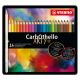 Astuccio in metallo Stabilo contenente 24 matite colorate Carbothello, mina carboncino dal tratto secco e polveroso, utilizzabili sia a secco, sia in miscela. Spessore del tratto 4,4mm, intensa luminositA' ed opacitA', molto resistente a luce ed urti.