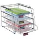 Set di 4 vaschette portacorrispondenza scorrevoli realizzate in robusta struttura in filo di metallo cromato e portaetichette in plastica per la personalizzazione del contenuto. Adatta a contenere documenti fino al formato 24x32cm. Ogni vaschetta ha capacitA' 6,5cm. Dimensioni: 31,5x39cm h 31,5cm