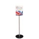 Supporto in alluminio per segnaletica da pavimento, con base in colore grigio canna di fucile e porta avvisi in metacrilato. Dimensioni 32 x 138cm.