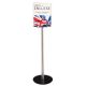 Supporto in alluminio per segnaletica da pavimento, con base in metallo colore grigio canna di fucile e porta avvisi in metacrilato. Dimensioni 32 x 138cm.
