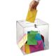 CONTENITORE AD URNA IN MATERIALE ACRILICO ALTAMENTE TRASPARENTE. DOTATO DI FESSURA SUL LATO SUPERIORE E CHIUSURA DI SICUREZZA CON SERRATURA E CHIAVE. IDEALE COME CONTENITORE DA BANCO PER LA RACCOLTA DI SUGGERIMENTI, COME ESPOSITORE E COMPLEMENTO D'ARREDO PER NEGOZI E VETRINE. DIMENSIONI: 25X25X25CM. La fessura E' larga 12,5 cm.