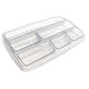 Bacinella portaoggetti dal formato compatto e di poco ingombro. PuO' essere usata all'interno di un cassetto o sulla scrivania. In plastica antiurto trasparente. Formato 25,3x3,4x15,7cm.