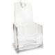 Portadepliant da parete e da banco a tasca singola f.to 1/3 a4. Design pulito ed essenziale, possono entrare uno nell'altro cosI' da guadagnare spazio sul banco. in materiale plastico perfettamente trasparente con dorso leggermente inclinato per garantire la massima stabilitA' del materiale esposto. Accoppiabili ad incastro e appendibili a parete. Dimensione 11,7x19,5x10,1cm.