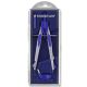 Compasso scolastico a frizione. Apertura rapida con tasti e regolazione micrometrica tramite vite centrale. Aste articolate. Per cerchi fino a D360mm. Astuccio a cerniera contenente innesto universale e mine di ricambio.