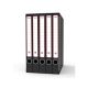 Sistema di archiviazione King Mec composto da un'unica custodia con 5 cartelline a 2 anelli (dorso 4 cm formato utile LxH 23x32 cm. Struttura in robusto cartone grigio rivestito con carta goffrata nera antimpronta. Custodia in tinta con parabordi. Anello di estrazione in acciaio. Etichetta adesiva giA' posizionata sul dorso. Ideale per raggruppare fogli perforati. Dimensioni esterne 23,5x25x35 cm.