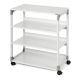 STRUTTURA IN ACCIAIO VERNICIATO CON POLVERI EPOSSIPOLIESTERE ANTIGRAFFIO E RACCORDI ANGOLARI IN PLASTICA RESISTENTE. DOTATO DI QUATTRO RIPIANI IN MELAMINICO SPESSORE 19 MM E QUATTRO RUOTE PIVOTTANTI DI CUI DUE PROVVISTE DI DISPOSITIVO DI BLOCCAGGIO. I DUE RIPIANI CENTRALI SONO REGOLABILI IN ALTEZZA. DIMENSIONI: 879X750X432 MM (HXLXP - Portata max per ripiano 30Kg.